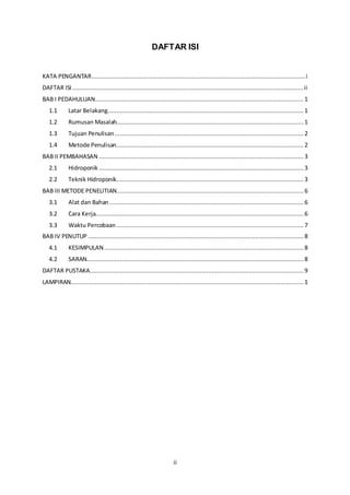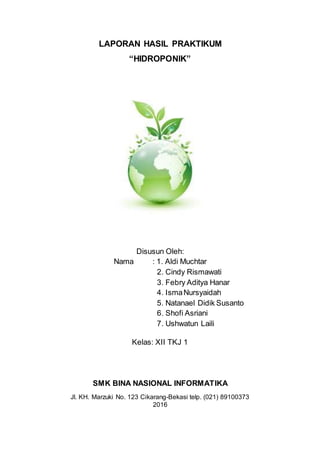 8 BAB IV PENUTUP 41 KESIMPULAN Hidroponik adalah suatu metode bercocok tanam tanpa menggunakan media tanah melainkan dengan menggunakan larutan. TAHUN AJARAN 20142015 JL Kadar maron kotak pos 104 telpfak. LAPORAN PRAKTIKUM HIDROPONIK NFT I.